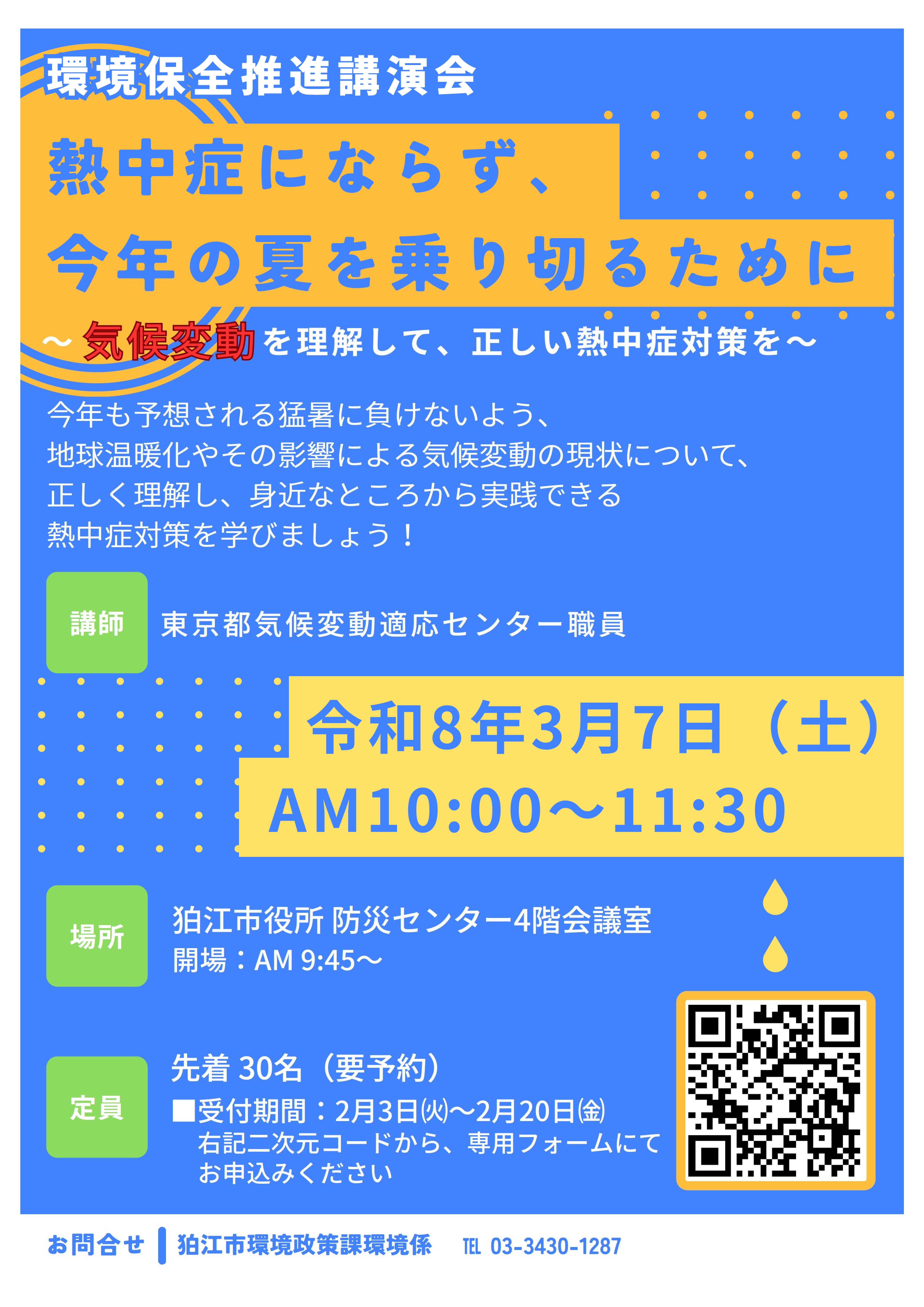 今年も予想される夏の猛暑への対策に向け、 地球温暖化やその影響による気候変動の現状について理解しつつ、身近なところから実践できる熱中症対策の方法を学びます。