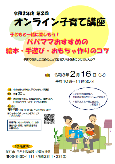 令和2年度第2回オンライン子育て講座「子どもと一緒に楽しもう!パパママおすすめの絵本・手遊び・おもちゃ作りのコツ」
