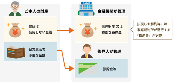 契約者ご本人が判断能力が不十分でケアが必要な方の場合、ご家族が預貯金の引き出しにきた場面で、基本的に「成年後見制度の利用が必要です」とご案内いただいている金融機関等も多いと思われます。その場合は、市福祉相談課、あんしん狛江または地域包括支援センターにご相談することをお勧めください。制度をよく理解して申立てを行い利用開始となることで、ご本人の生活を支援するチームを適切に作ることができます。