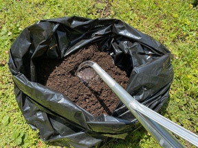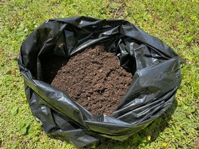 ![]() 3.土を大きめのビニール袋に入れる。 |