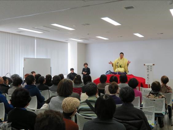 講師には落語家をお招きし、「笑いが人の免疫力を上げる」という笑いの重要性に関するお話や、ご自身の介護経験や落語家としての試練にまつわるエピソードから、つらい出来事も人に話すことで気持ちが楽になったりするといったお話をいただきました。