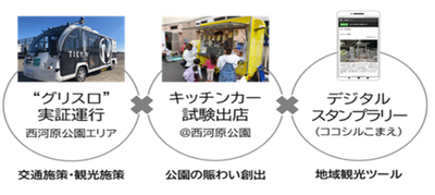 また、グリーンスローモビリティの実証運行にあわせて、多摩川や西河原公園の利用者の飲食ニーズを把握するためのキッチンカーイベントと、ローカルツーリズム(地域観光)の視点から、多摩川エリアに点在する歴史・文化遺産に触れてもらうためのデジタルスタンプラリーを実施します。