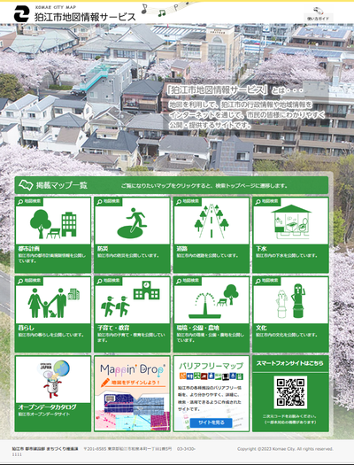 令和5年10月1日(日曜日)から、地図を利用して、市が保有する行政情報や地図情報をインターネットを通じて市民の皆さんに分かりやすく公開するサイト「狛江市地図情報サービス」を開始します。