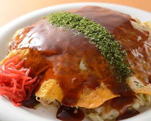 【店舗紹介】広島焼の老舗店。いつも笑顔が絶えない、地元で大人気のお店です。薄いクレープ状の生地とキャベツ、干しエビ、豚肉そしておそばなどのいろいろな具を重ねて焼き上げ、特製ソースで仕上げたボリュームたっぷりの一品です。