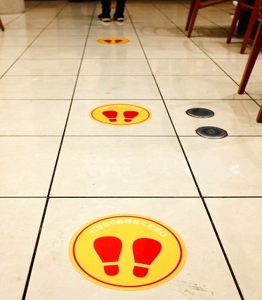 - お店のレジ前にある足跡マークやライン