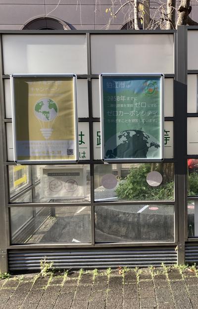 外側の壁面に大きなサイズのポスターを複数設置して通行者の目を引き、利用者が視線を感じることでポイ捨てしにくい環境をつくるものです。市の情報発信にも役立っています。