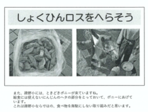 緑野小学校の児童達が、福祉ネット「ナナの家」で飼育しているポニーと触れ合いながら、食品ロスを削減する取組です。給食の残菜をポニーの餌とする。ポニーの糞をたい肥として協力農家に提供するなど、食品の循環を実践しています。