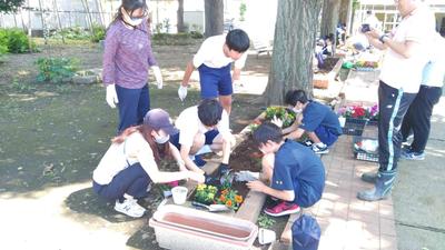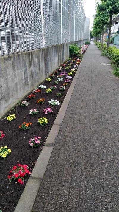20年近く続いている学校行事で、狛江第三中学校の生徒と先生達が、地域への感謝の気持ちを込めて植栽から手入れまでを行っています。道を花で飾ることで近隣住民の方々に楽しんでいただいています。