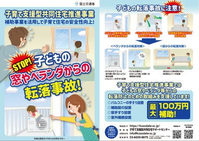 転落防止の手すりや補助錠の設置、防犯性の高い窓や玄関ドアの設置など、住宅内での事故防止や不審者の侵入防止などを目的とした子どもの安全確保に資する設備の設置に対して支援