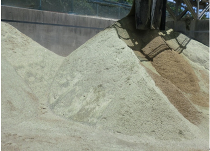 (4)細かく粉砕されたガラス・陶磁器類は手で触っても尖っていることを感じないくらいに研磨され、山砂のようなリサイクルガラス造粒砂となります。