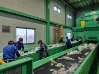 この中間処理施設では人の手でプラスチック類ごみと不適物(金属など)に選別をします。
