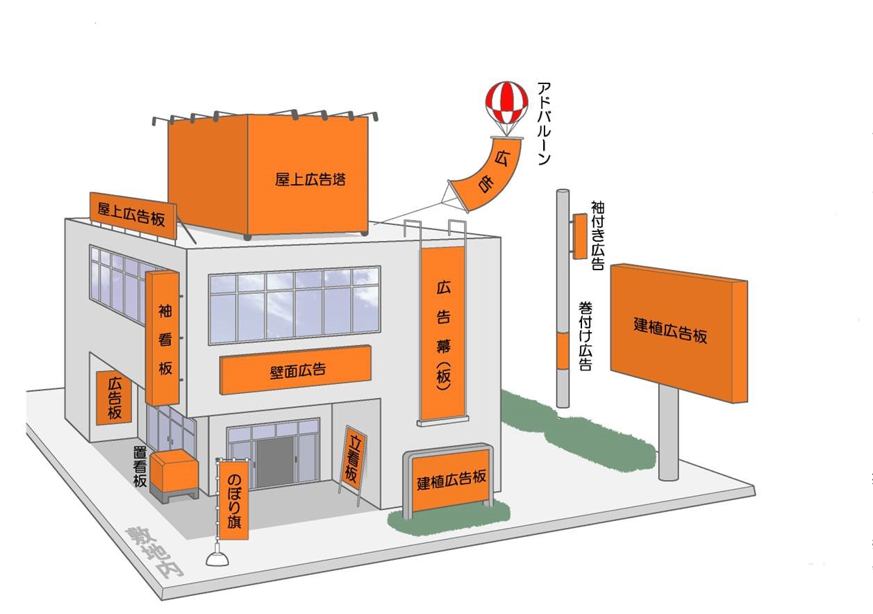 貼り紙・立看板・広告板などの広告物を屋外に掲示するときは、市または都の許可が必要です。