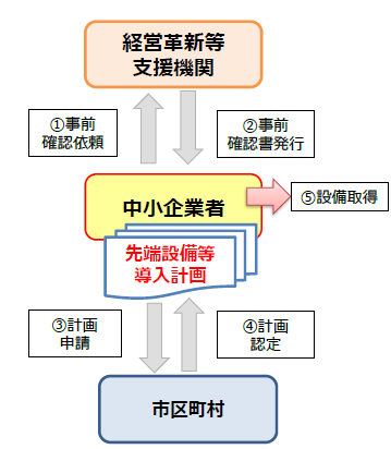 • 「先端設備等導入計画」とは、中小企業・小規模事業者等が設備投資を通じて労働生産性の向上を図るための計画です。