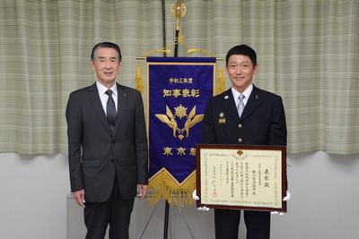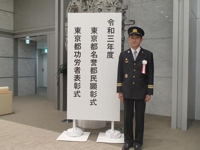 10月1日(金曜日)に消防業務に精励し、他の模範となる消防団活動が評価され、「消防・災害対策功労」の分野において、東京都知事から表彰状・表彰旗を贈られました。