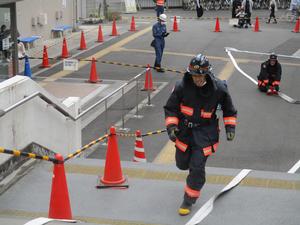 3月27日(日曜日)に、狛江市役所でホース延長審査会を実施しました。日々の訓練成果を測定するため、防災センター防火水槽への消防ポンプ車の部署、そこからホースを延長し市民ひろば側での火点への放水までの一連の流れを審査しました。