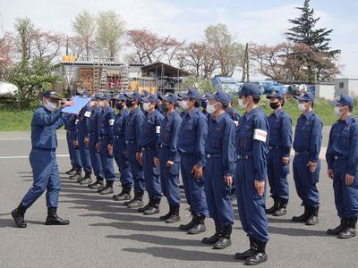 当日は団体行動の基本であり、団結力を高める「規律訓練」、ポンプ車の「操法及び放水訓練」を行いました。