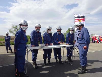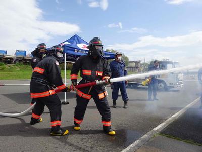 当日は団体行動の基本であり、団結力を高める「規律訓練」、事前に訓練の進行やシナリオが団員に知らされない、より実践的な「放水訓練」等を行いました。