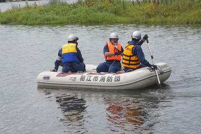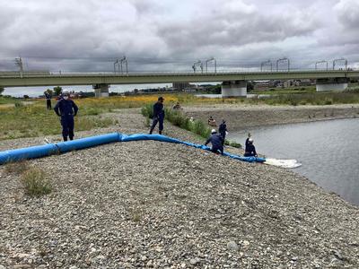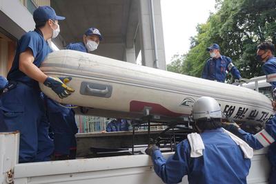 8月22日(日曜日)に、多摩川で水難救助における技術向上を図ることを目的に救命ボートを使用した舟艇訓練を実施しました。また、7月29日に新たに配備した組立式ボートの取扱確認及び組立訓練もあわせて実施しました。