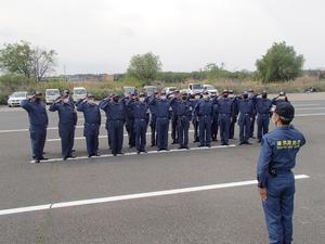 第24期の初めての合同訓練です。消防団員の基本となる規律訓練をはじめ、エンジンカッター等の資機材取扱訓練、消防ポンプ車による放水訓練を実施しました。