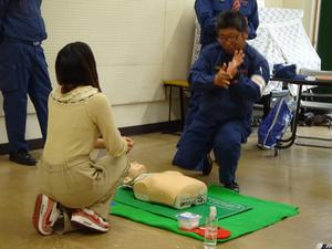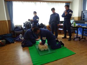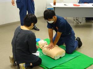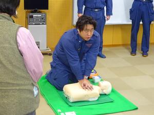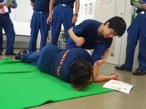| 心肺蘇生法の操作を練習します。 | 救命活動のお手本を見せています。 |