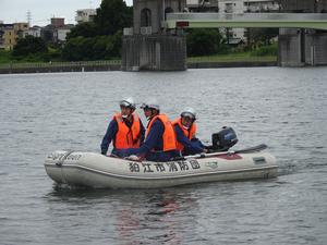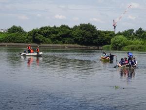 6月9日(日曜日)多摩川で狛江市総合水防訓練の予行訓練と、水難救助における技術向上を図ることを目的に救命ボートを使用した舟艇訓練を実施しました。