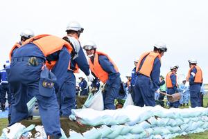 6月16日(日曜日)に総合水防訓練を実施しました。今年は、昭和49年の多摩川堤防決壊から50年という節目です。消防団や各関係機関の災害対応力を強化し、水防態勢の万全を図ることを目的として、本番を想定した訓練を行いました。当日は、小池都知事が来場されました。