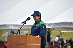 | 排水ポンプ運用訓練も行いました。 | 小池都知事が来場されました。 |