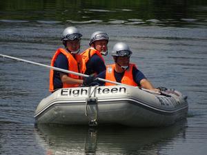 7月21日(日曜日)狛江古代カップ第32回多摩川いかだレース大会が開催され、狛江市消防団は、ボートによる水上の警戒活動を行いました。終了後には、舟艇訓練も行いました。
