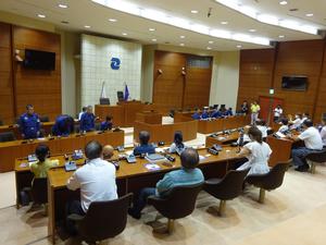 | 市議会議場で開催しました。 | 実践を交えながら学んでいきます。 |