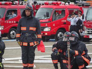 9月29日(日曜日)に第65回北多摩地区消防大会が開催され、北多摩地区17市の消防団が集いました。狛江市消防団は、放水演技・パレード出場しました。