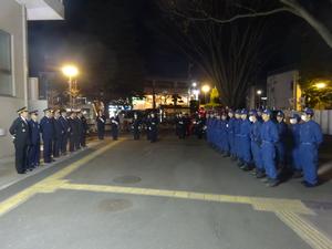 | 来場者が安全に楽しめるよう警戒を行っています。 | いよいよ暗くなり、更に気を引き締めて警戒を行います。 |