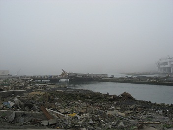 漁港方面は、ほとんどが 基礎のみを残して流された |