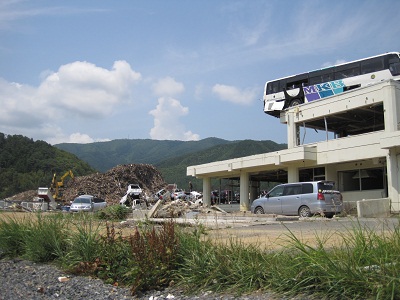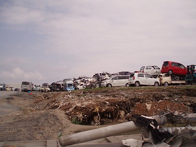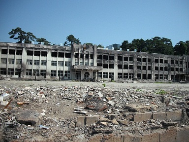 雄勝中学校にも瓦礫が流れ込んだ |