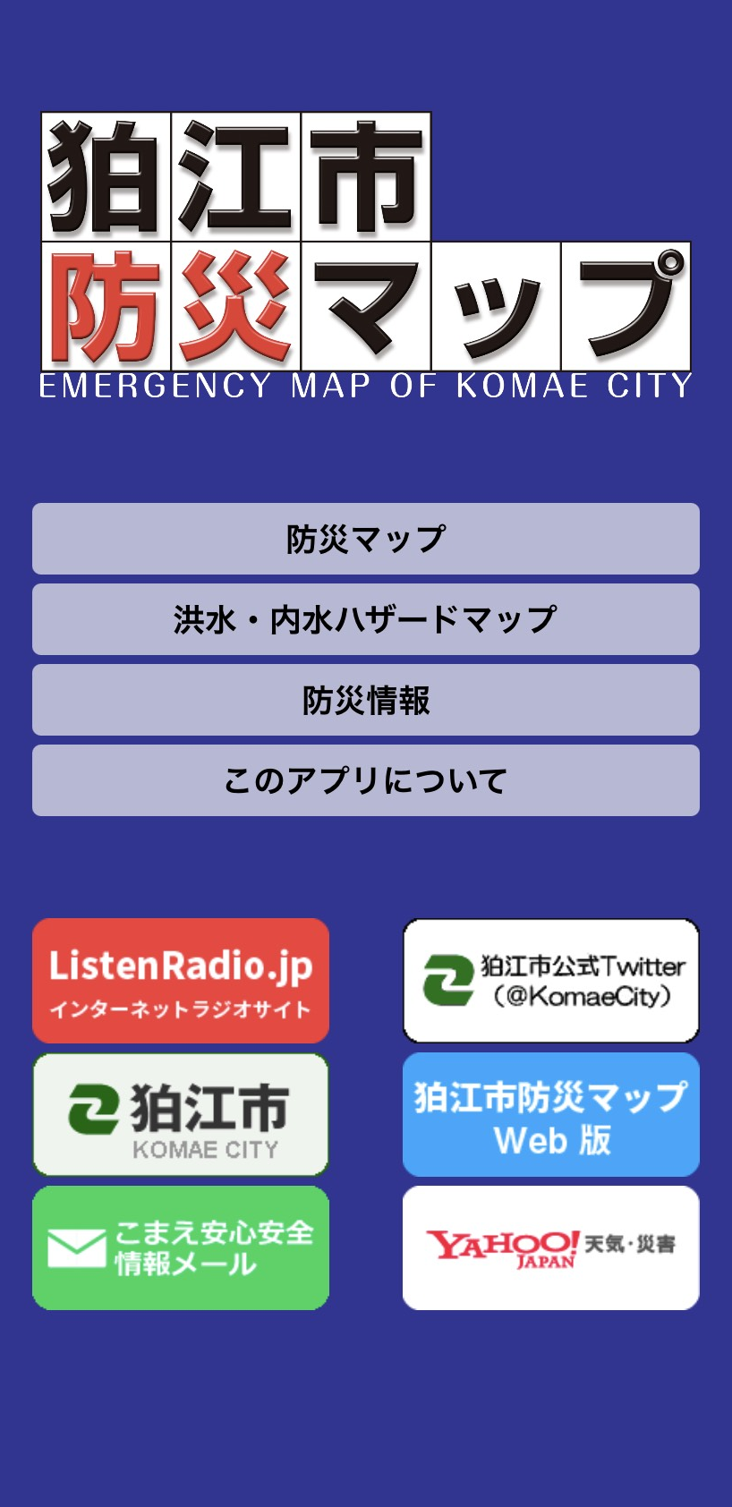 「狛江市防災マップアプリ」は、市内の災害時集合場所や避難所などの所在地を示した地図をスマートフォンで閲覧するアプリです。