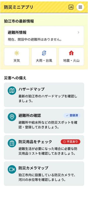 狛江市防災ミニアプリ