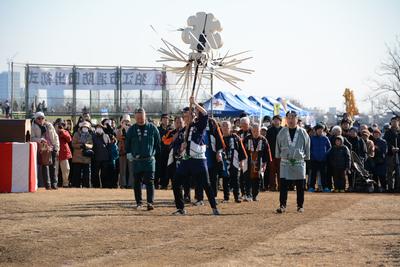 1月11日(日)晴天の多摩川河川敷にて、初春まつりイベントの1つでもある狛江市消防団出初式が行われました。