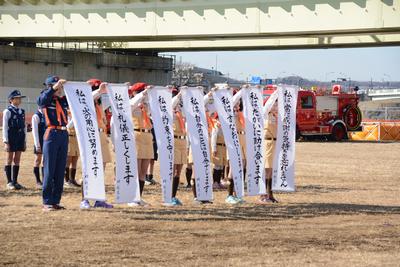 | 北睦五番組による木遣りの演技 | 狛江消防少年団による「七つの誓い」 |