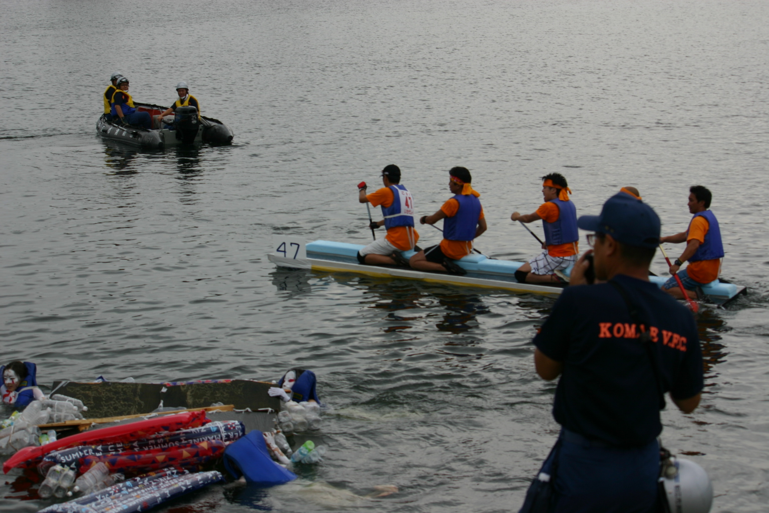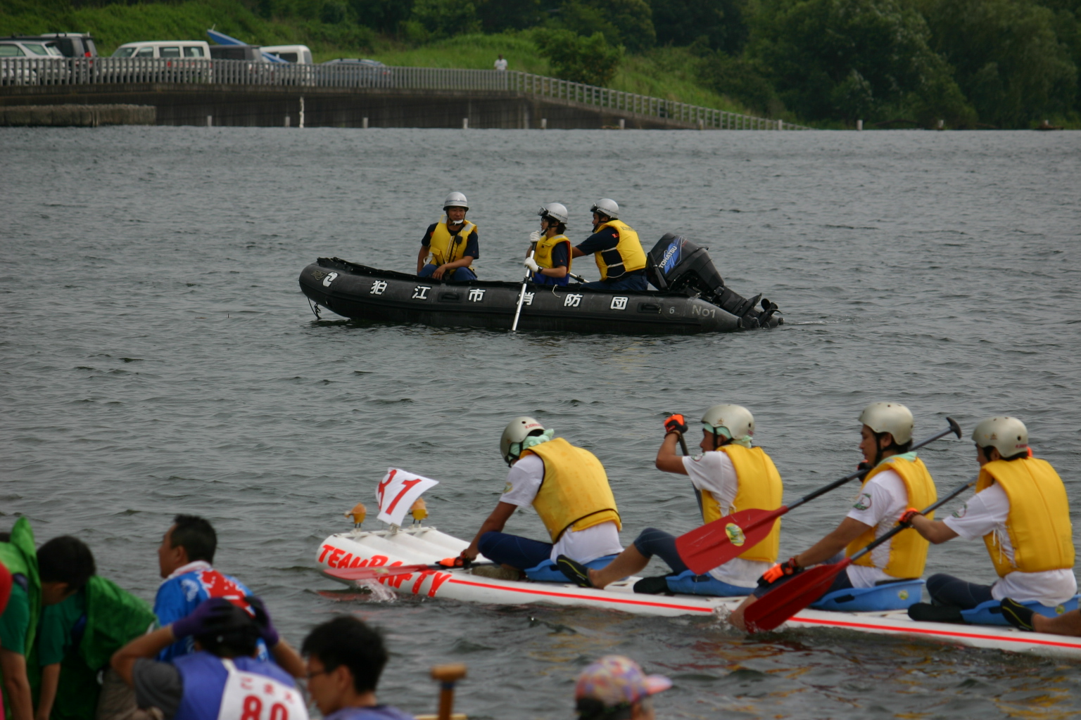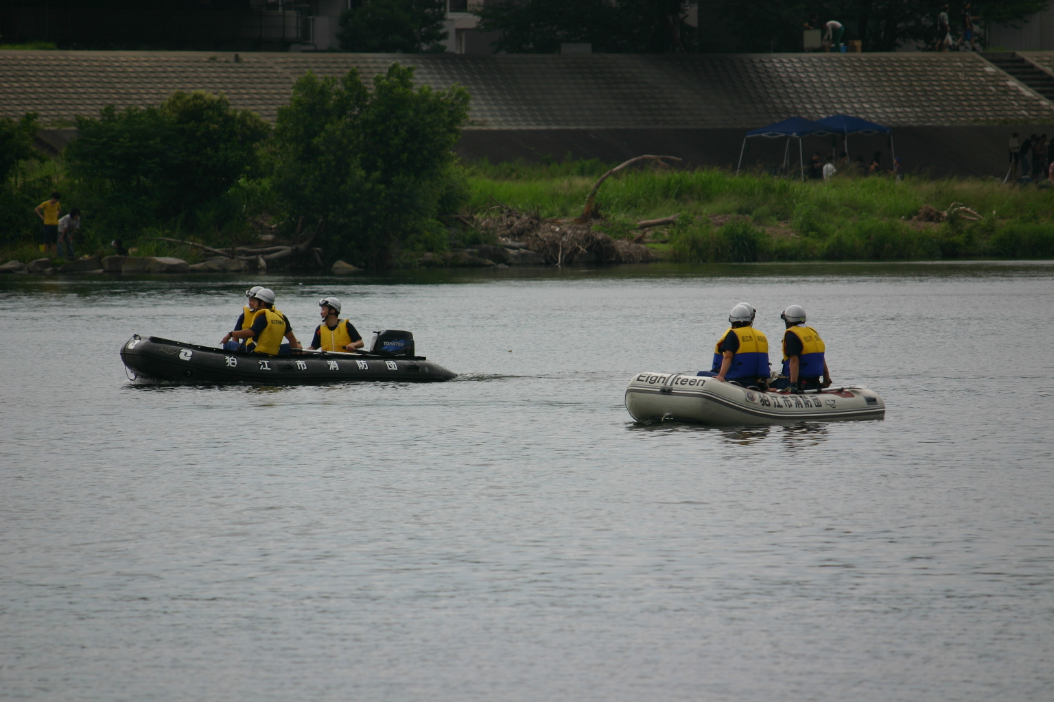 | いつでも急行できる位置で警戒中! | 岸からボートへ無線で指示を出します |