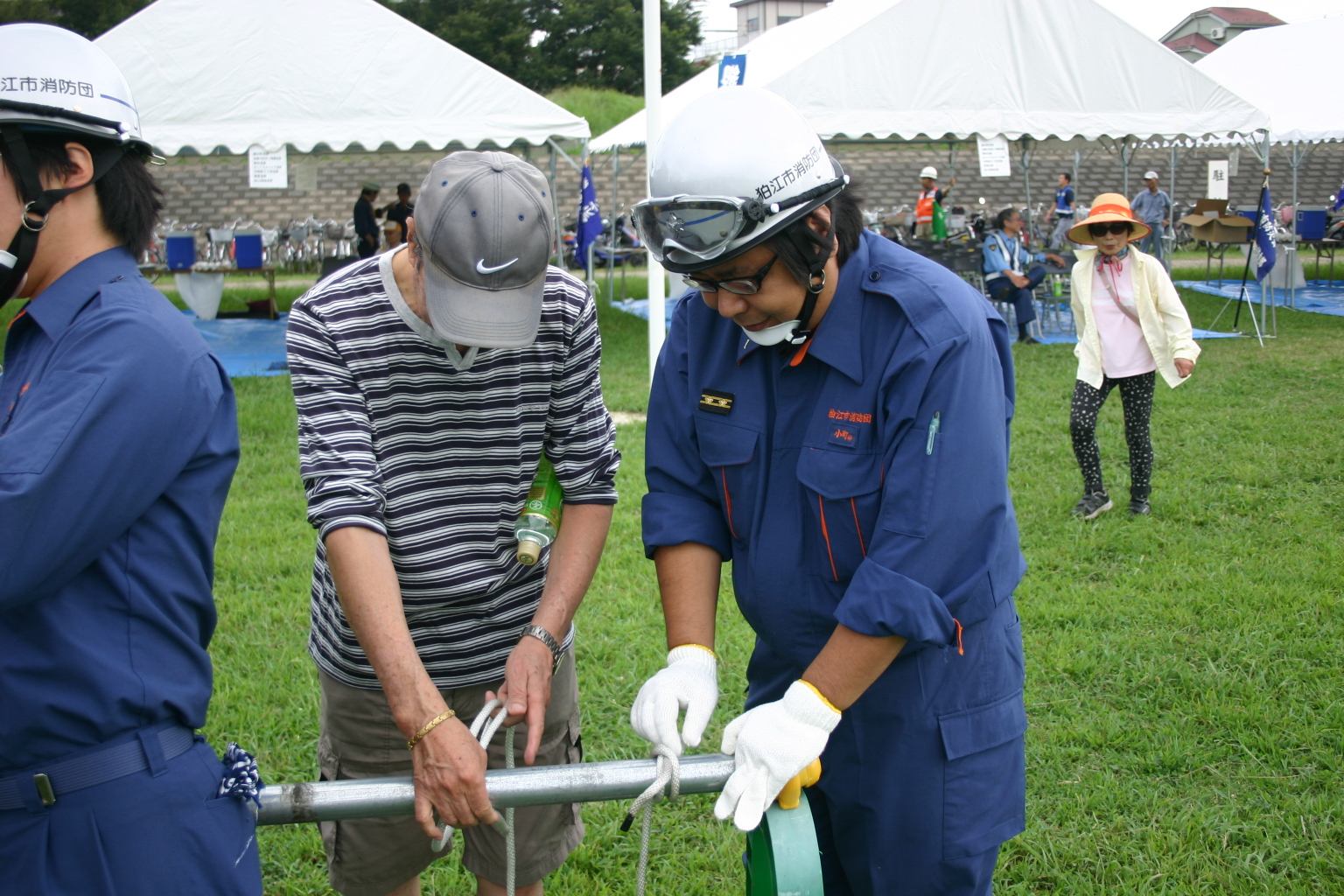| 9名の方が参加 | 消防団員が親切丁寧に指導します |