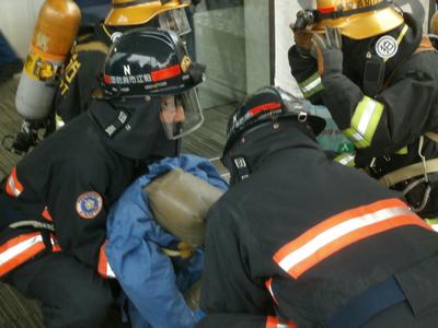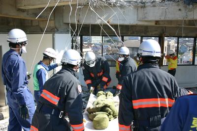 ダミー人形を使っての救出訓練 |