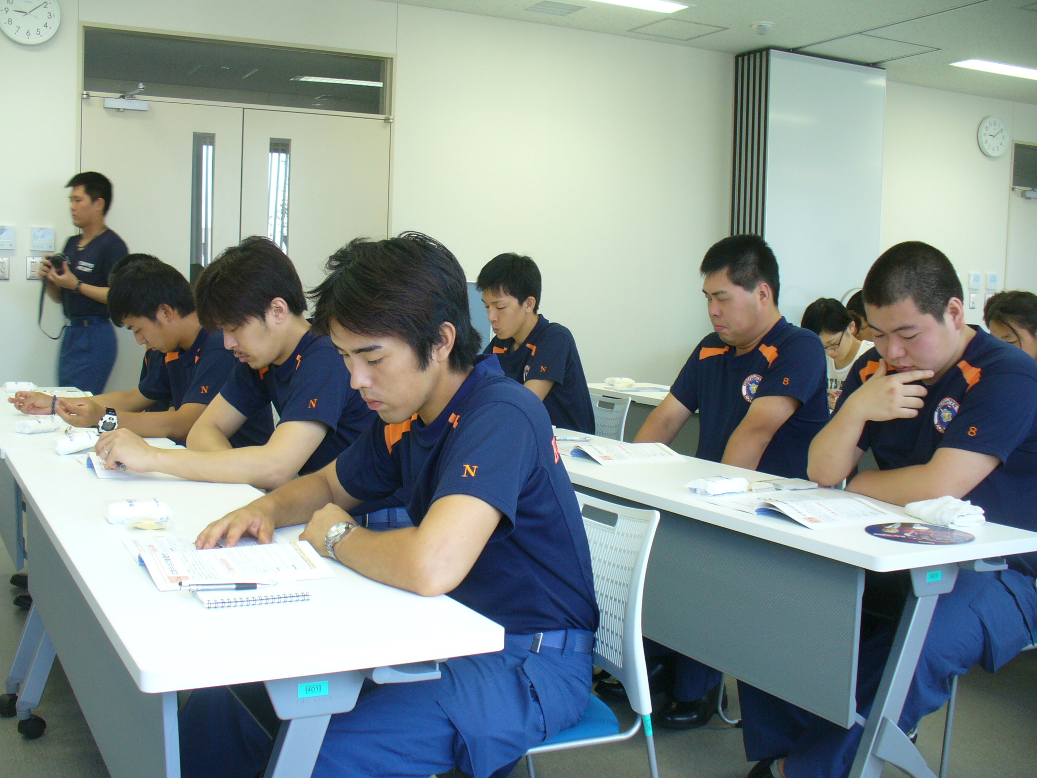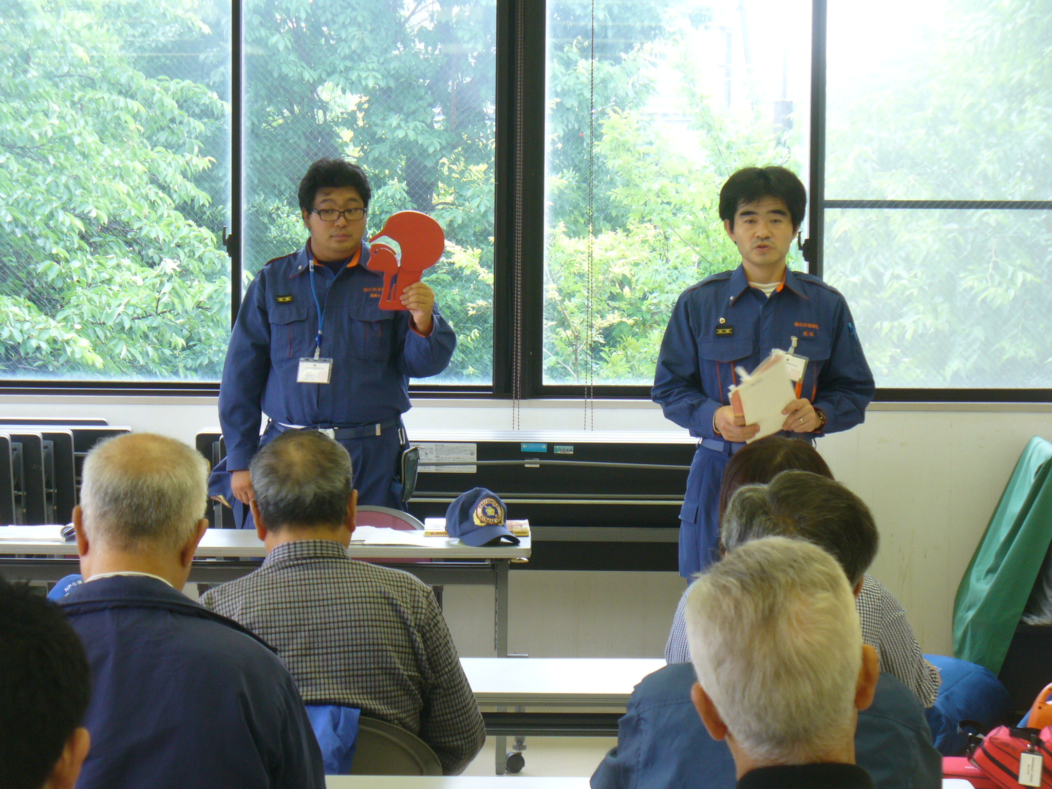 AEDの使い方を熱心に聴いています |