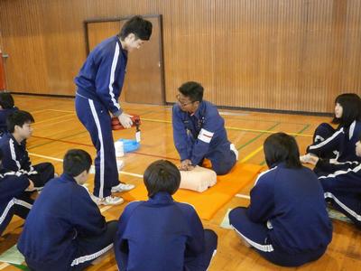今年度は、3月3日(火)第四中学校、4日(水)第二中学校、9日(月)第一中学校、12日(木)第三中学校で実施され、狛江市消防団は、救命講習の講師となって、命の尊さを指導しました。
