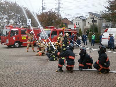 狛江市民まつりの消防団の活動の様子