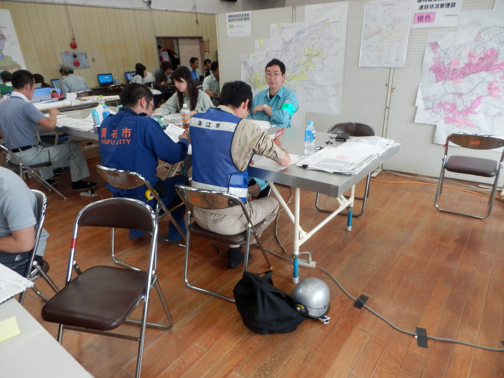 狛江市を初めとした、構成市職員28人および東京都職員2人の計30人による罹災証明書発行業務および家屋評価業務の支援活動です。 |