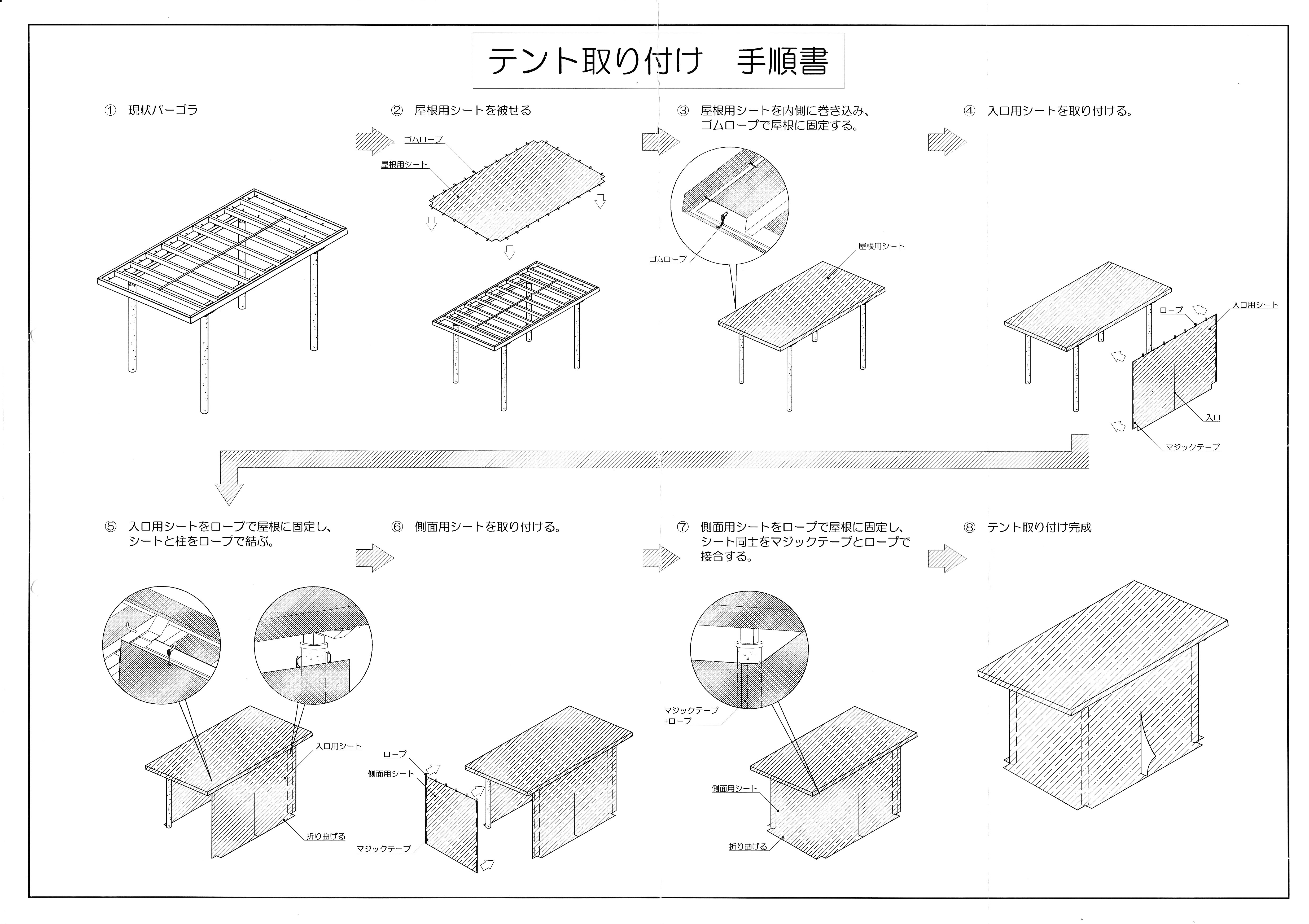 パーゴラへのテント取付手順 [2388KB JPGファイル]