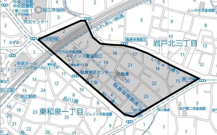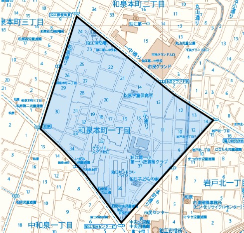 | 和泉本町一丁目の一部(狛江第一小学校周辺) [115KB jpgファイル] |