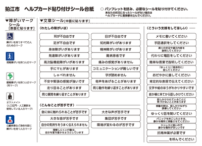 - カードを所持する方の状況に合ったシールを貼付することで、独自のヘルプカードを作成できます。