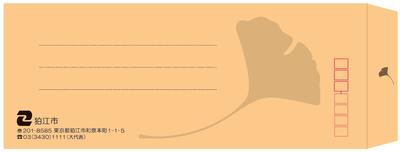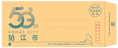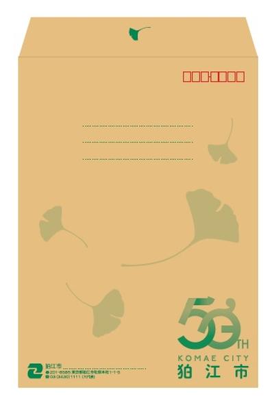 狛江市市制施行50周年記念ロゴマークが入った新しいデザインの封筒が完成しました。封筒作成にあたって、専門家によるデザイン性を高めた仕様になっています。