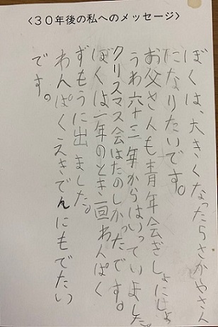 過去からのメッセージを大切に受け取った本年、『タイムカプセル~ミライへの手紙~』として、