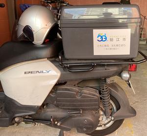 50周年記念ロゴマークが入った自転車とバイクが市内を駆ける。